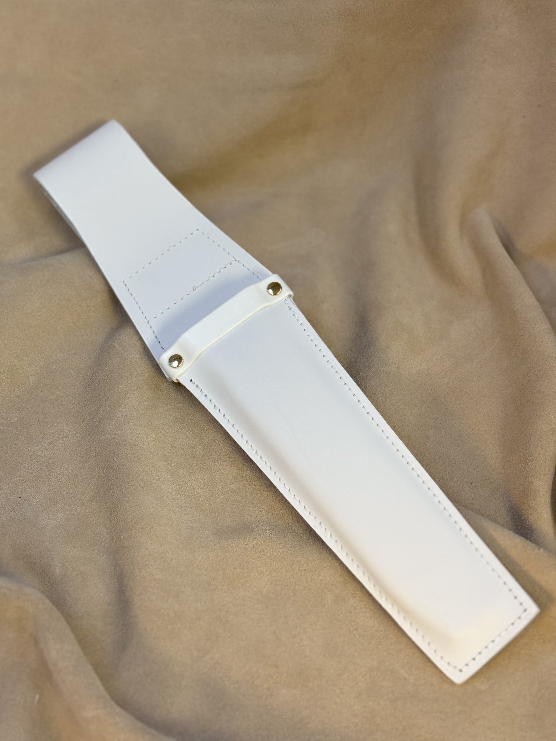 This scabbard is designed to hold the bayonet used by Canadian Armed Forces units. It features a plastic liner to protect the leather from damage from the bayonet blade. Available in white and black.
