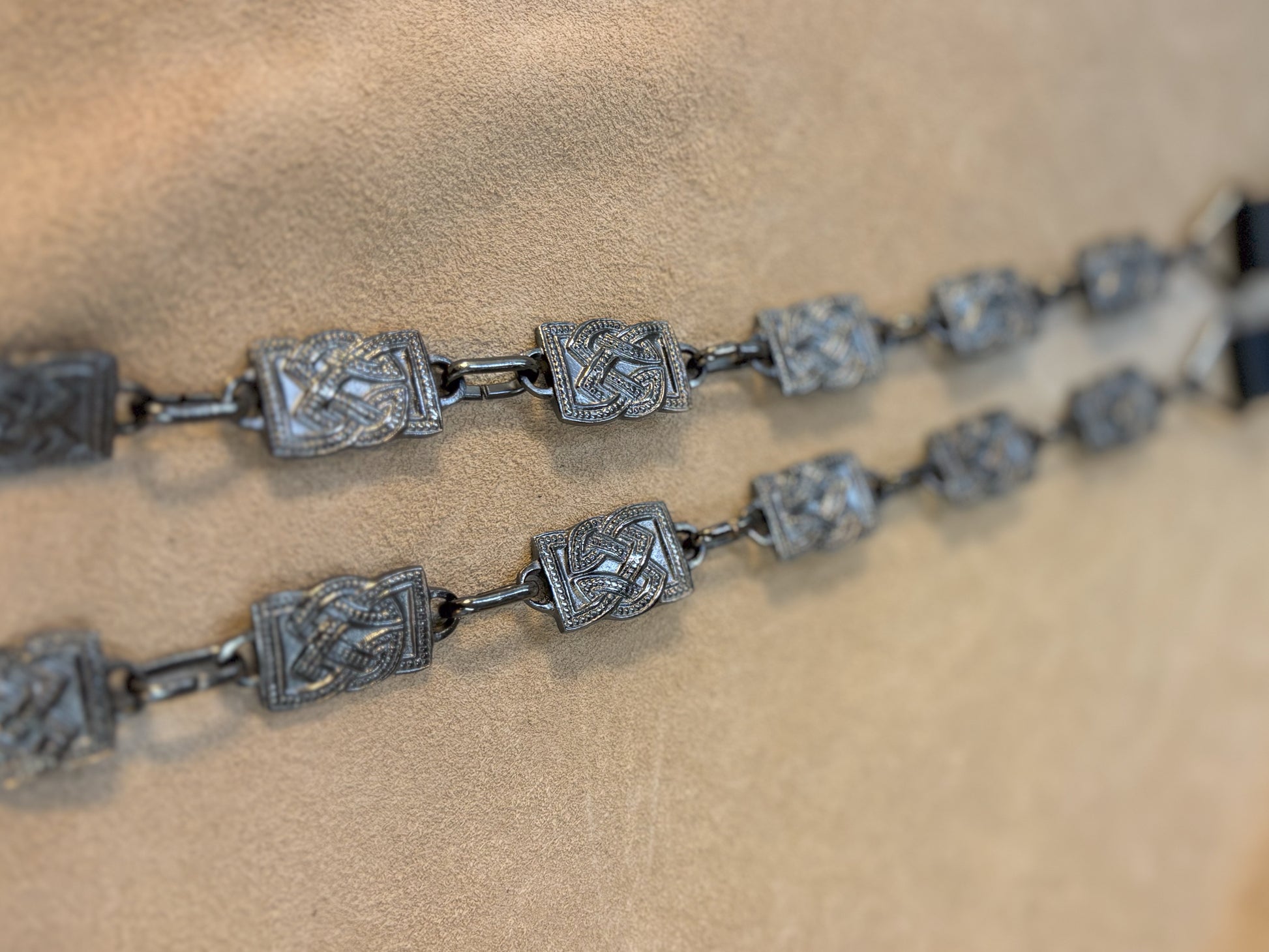 This chain strap features intricate Celtic weave chain to give that extra special look to your Highland ensemble. We offer both a shiny silver and antique silver finish chains
