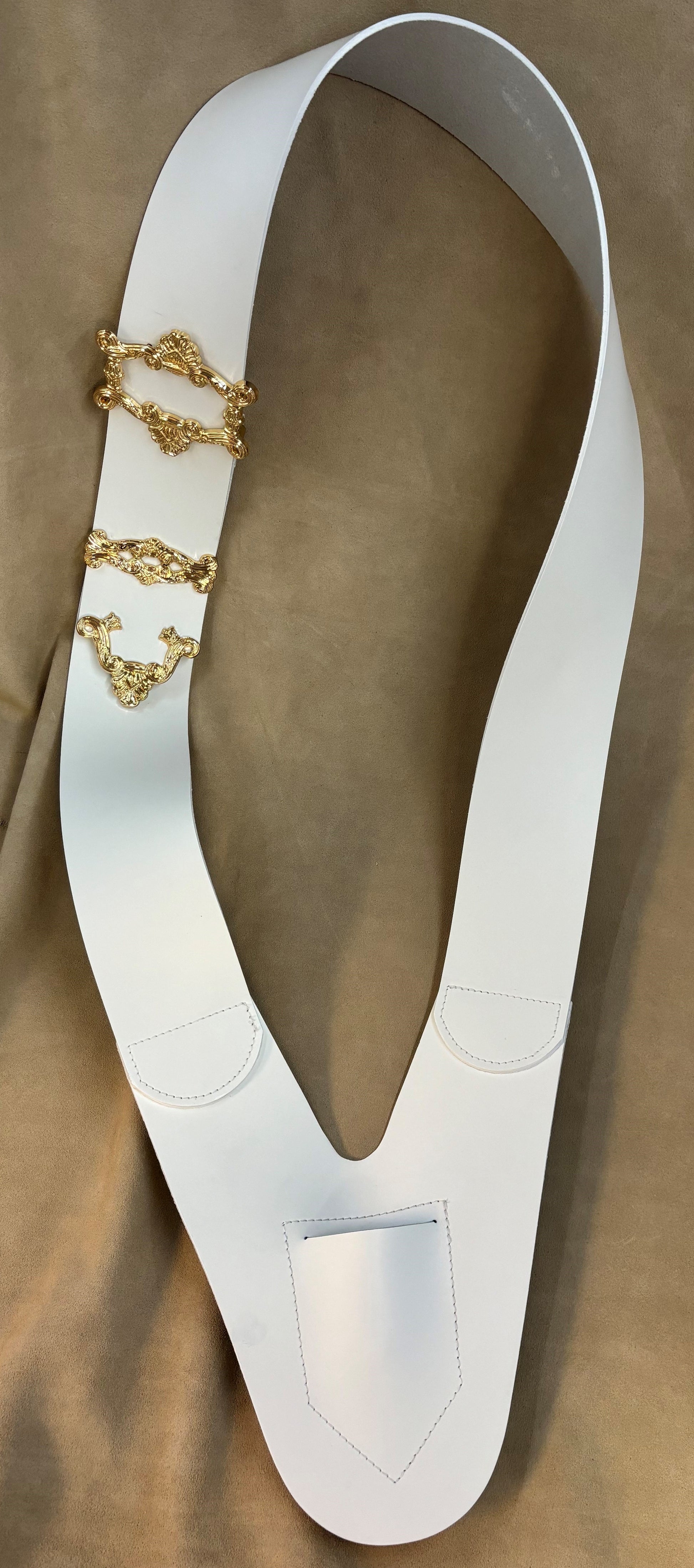 This is an approved Canadian Armed Forces Colours Carrier. It is a one size only product and only available in white as per CAF standards. Gold hardware is standard, but silver is an option upon request.