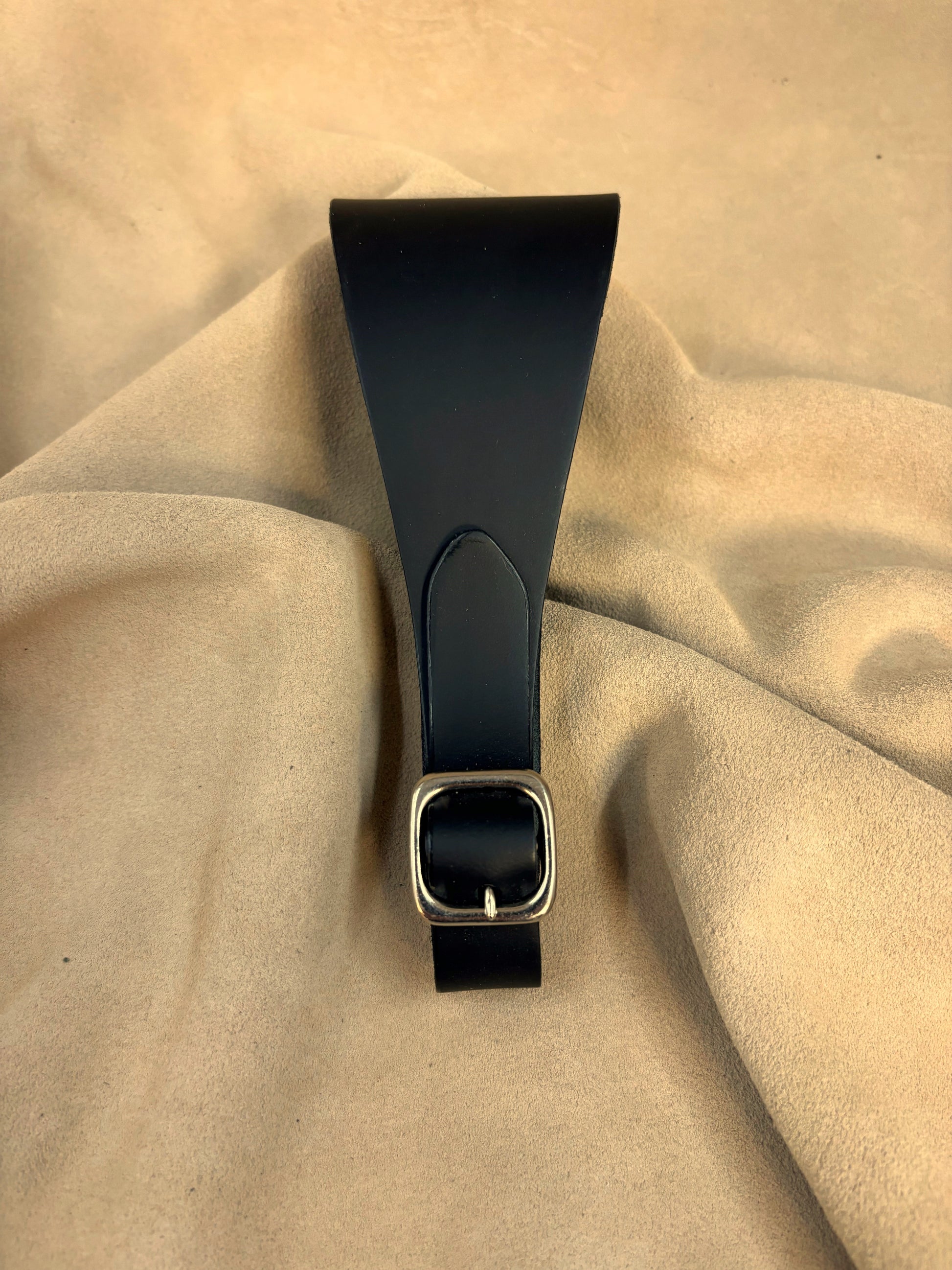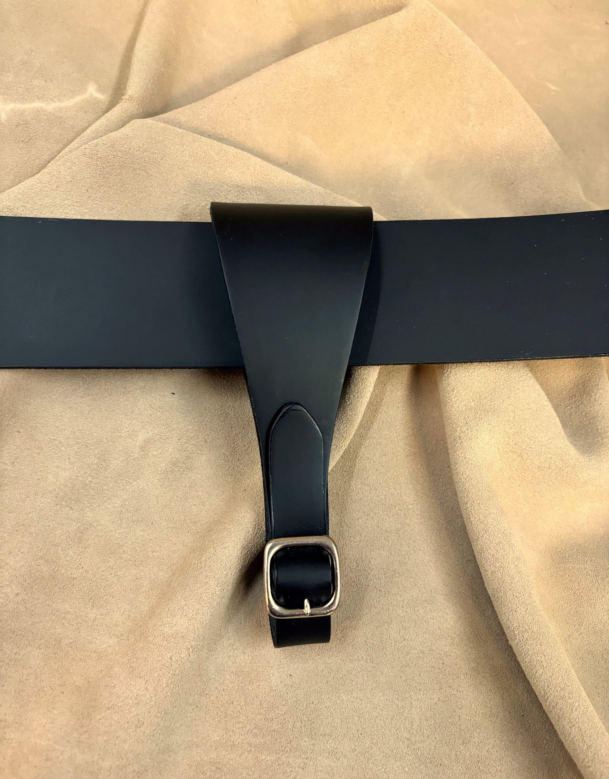 A Dirk Frog is used to support a Dirk scabbard on a waist belt. L & M Dirk Frogs are made from top grain leather and use a silver buckle. Our Dirk Frogs will fit both 2 1/4" and 2 1/2" belts and have adjustment holes to adjust the height of the Dirk on the wearer.